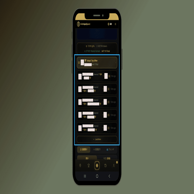 Logs such as “User A sent 5pt of Cheer to User B” and “Top Gifter Today: User C sent 150pt” appear continuously, allowing you to truly feel the activity and energy of the community in real time.