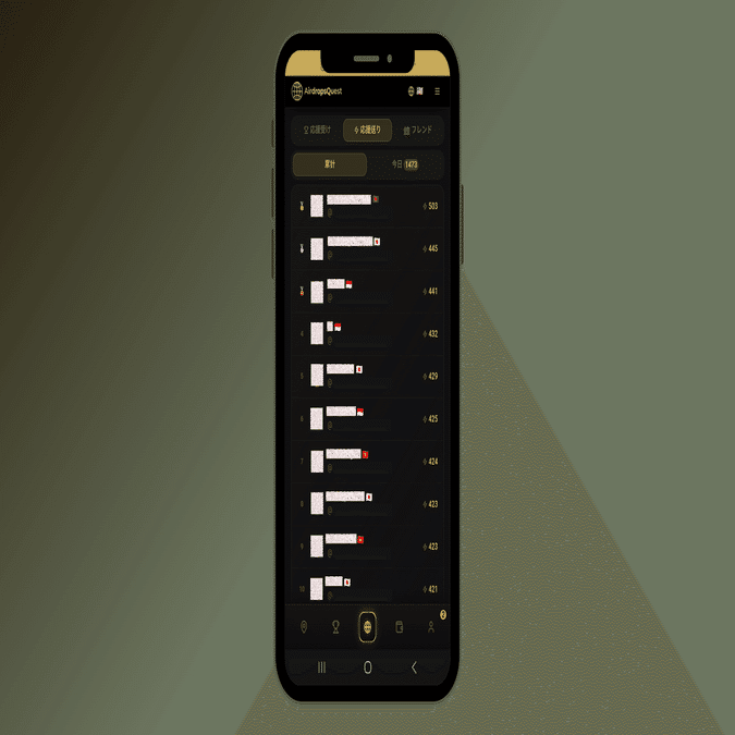 When you open the “Nation” tab in AirDrop Quest, the first thing you see is a globe visualization with real-time animations connecting countries. This is not just a ranking page—it’s a space where connections between users around the world are visually represented.