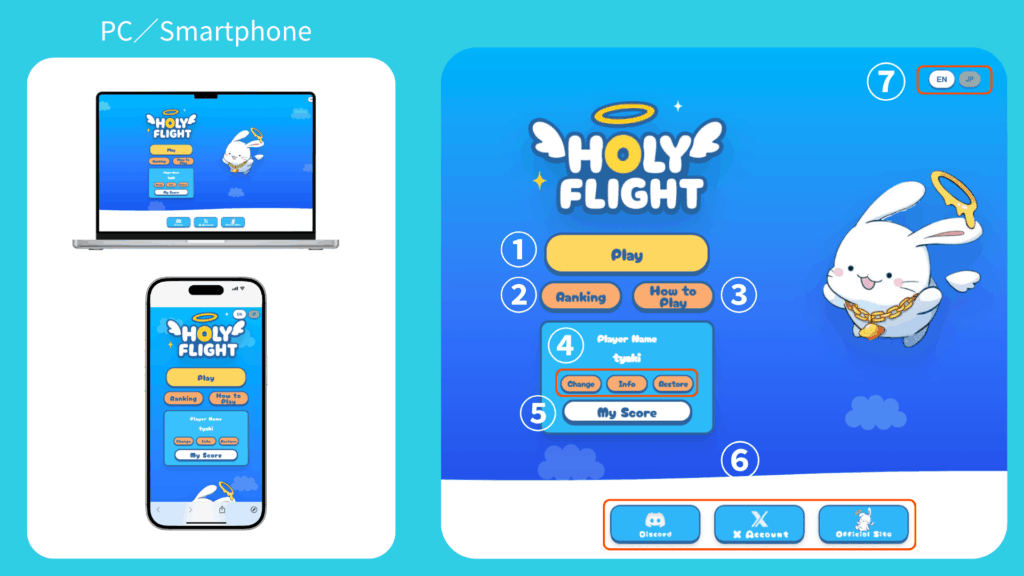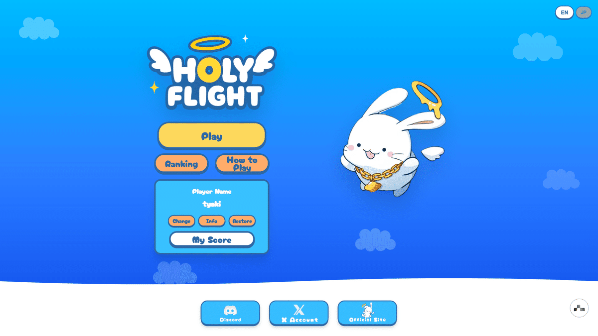 Race through the skies with the white rabbit HOLY, gather coins, and push for new high scores!