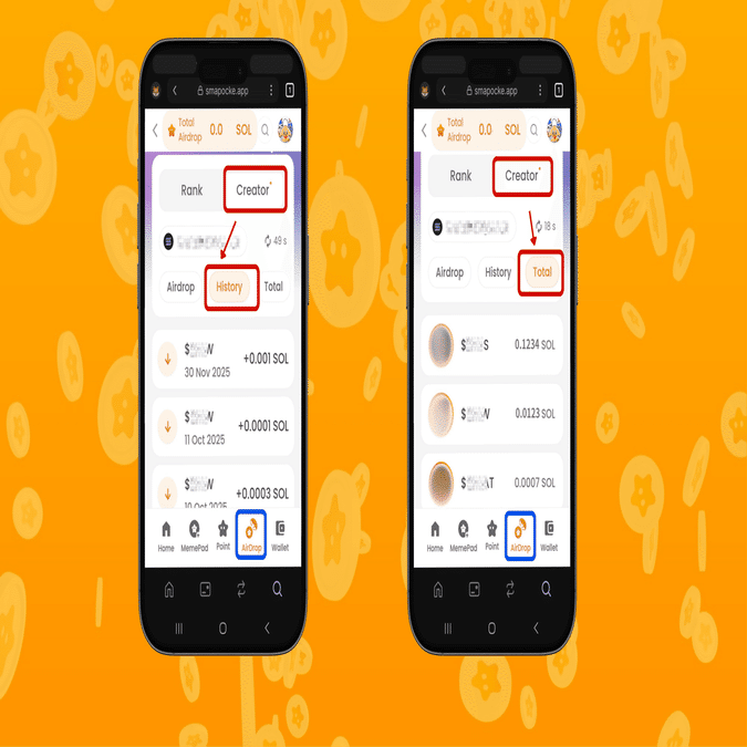 (This information is the same as the “Airdrop Schedule” shown on the Home screen.) - Airdrop Claiming for Ranking Rewards and Creator Rewards