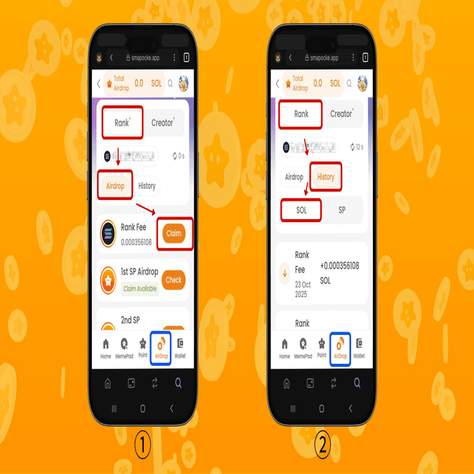 - Select Rank → Airdrop, then click Claim under Rank Fee.
