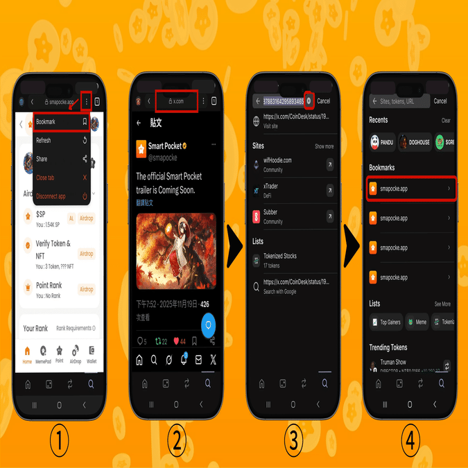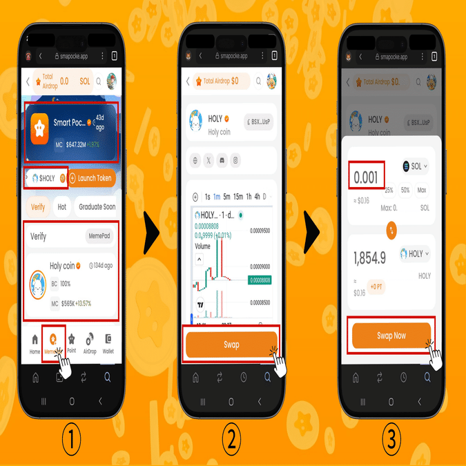 ① Tap MemePad from the bottom menu → select the Official Token or Verify tab at the top.