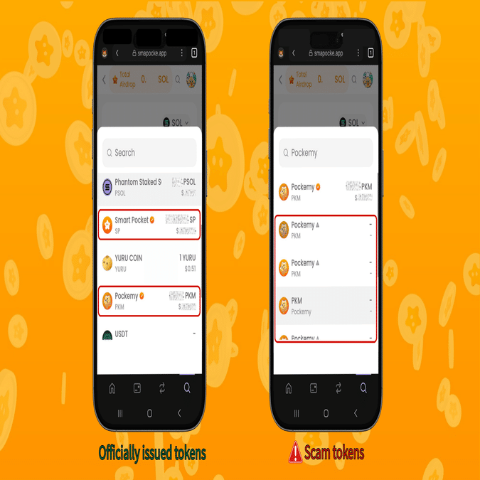 ⚠️ Tokens that show a warning icon or have unnatural price values may be scam tokens, so never swap them.