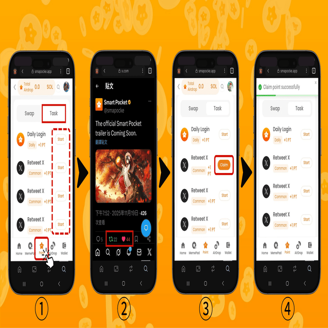 By using both SWAP (earn points through trading) and TASK (daily missions), you can efficiently accumulate PT.
