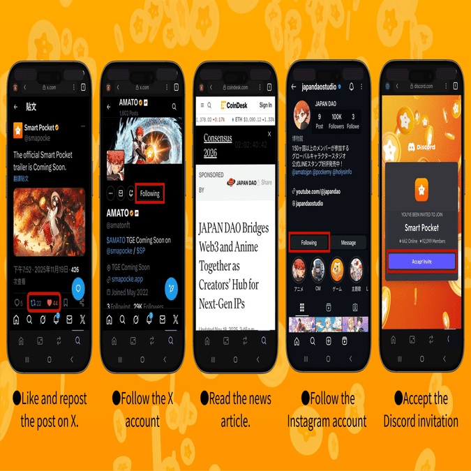 ② Perform the instructed action (e.g., like, repost, read news, etc.).